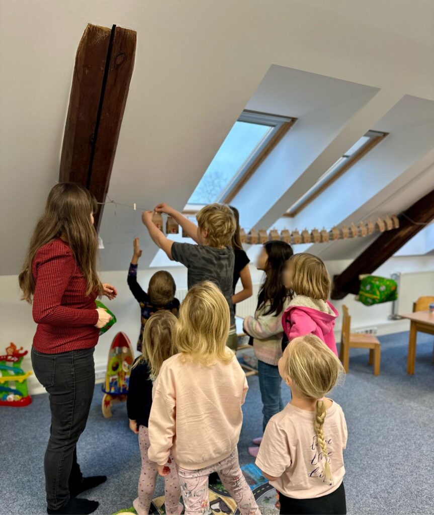 - Angličtinu zařazujeme lehce a nenuceně – přes písničky, obrázky a jednoduché hry.