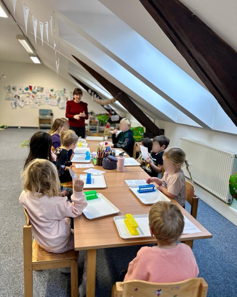 - Pro starší děti je vymezen speciální čas na předškolní přípravu – jemně a hravě rozvíjíme potřebné dovednosti a pomáháme jim připravit se na další kroky.